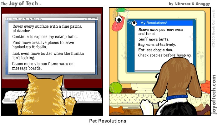 Published November 17, 2008 Dog -vs- Cat Post Views: 5,122 The Dog’s Diary: 8:00 am – Dog food! My favorite thing! 9:30 am – A car ride! My favorite […]